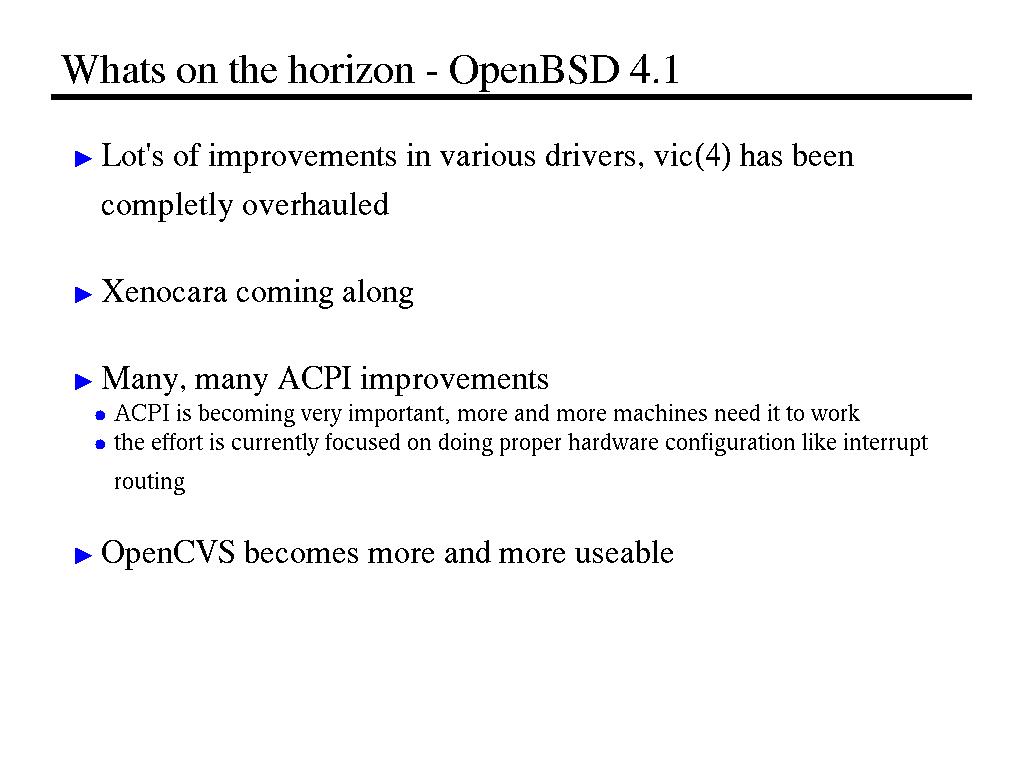 Page 20: Whats on the horizon - OpenBSD 4.1